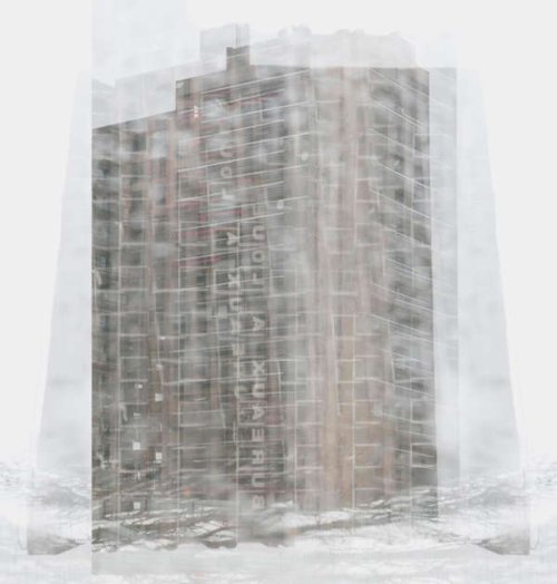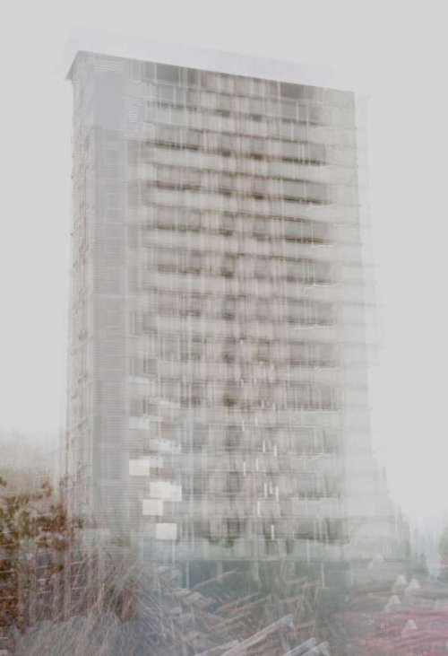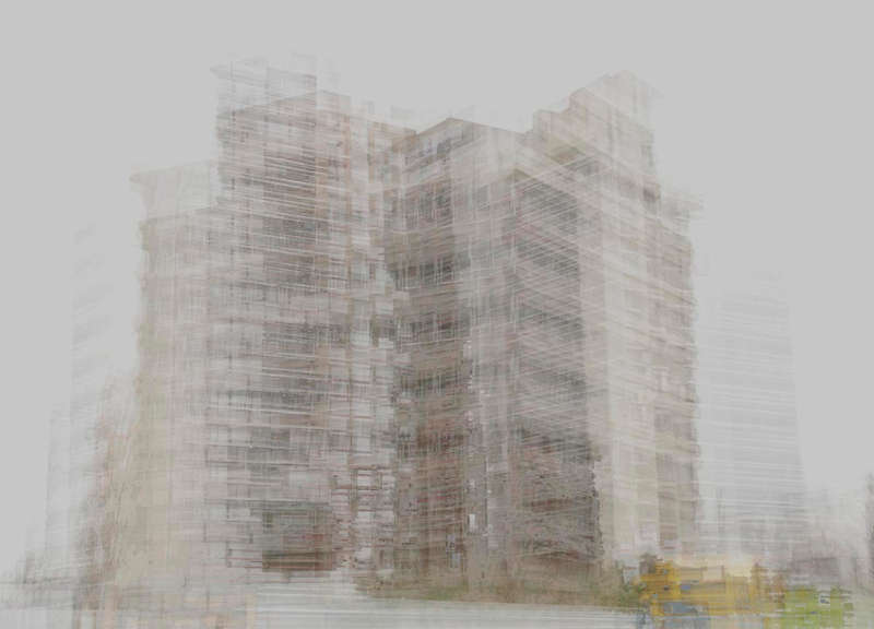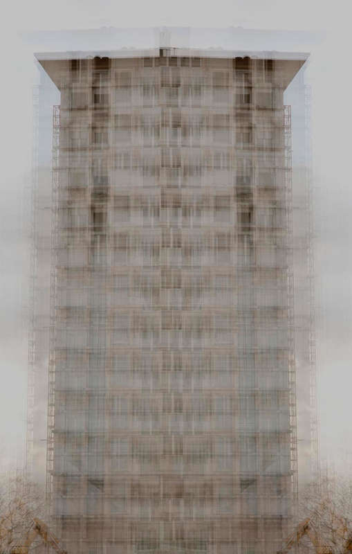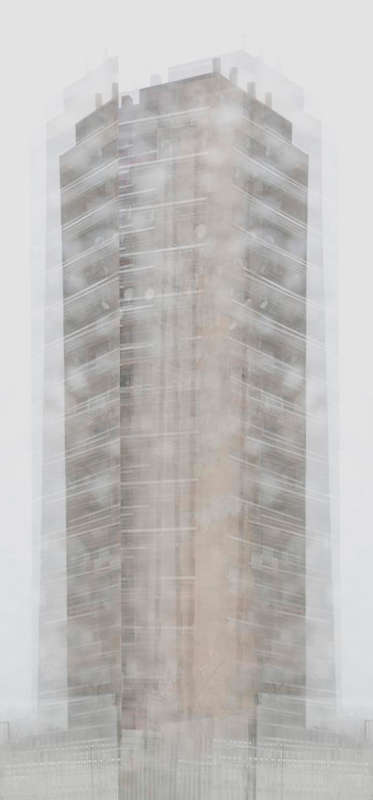 En isolant les bâtiments de leur contexte, l’habitation devient fantomatique, proche de l’abstraction. A mi-chemin entre réalité et fiction, les immeubles se dessinent lentement, transgressant le paysage qui les entoure.
