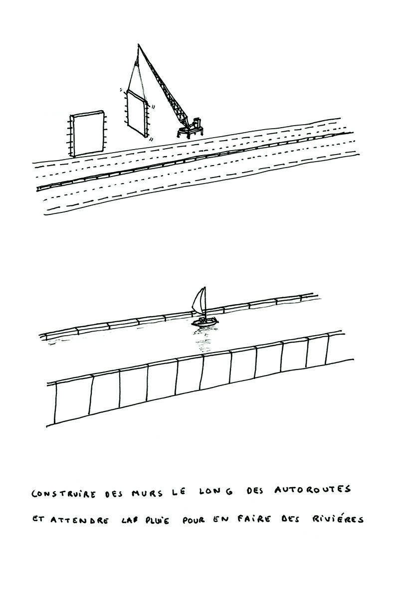 Les thèmes abordés par les plasticiens, architectes, écrivains et graphistes sont autant de résonances au lieu qui les accueille ici qu’à d’autres fleuves, ailleurs, par-delà des frontières, au-delà du temps présent.