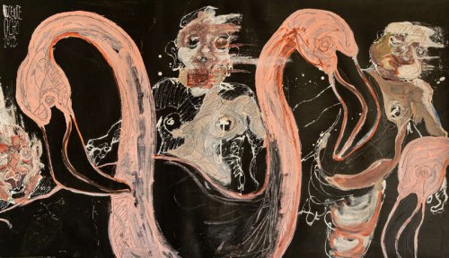 Le mélange viscéral et chaotique entre le dessin et la peinture, au service d’une recherche psycho-artistique