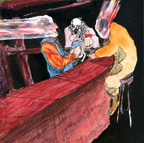 Normalement, je libère mes mains dans l’improvisation avec l’encre noire et la couleur. Je me laisse emporter par les impulsions du moment, entrant ainsi dans une sorte de transe ou de danse, qui me permet de me perdre dans ce faisceau de lignes et de taches qui viendrait à être une sorte de terre noire où les personnages bannis, dans les profondeurs de notre être, viennent à la lumière et de cette façon les reconnaître et leur donner forme, se réconcilier avec eux et leur donner leur espace et leur temps ; trouvant ainsi une arme contre l’ennui et l’uniformité de la réalité. L’art est une fleur électrocutée.