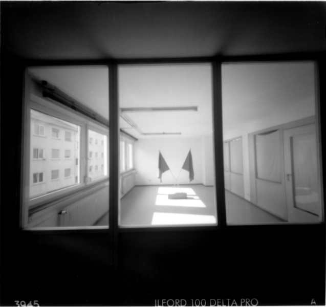 La riproduzione dell’immagine tramite lo strumento a foro stenopeico realizza quindi due spazi : il luogo fotografato e il luogo dove si incamera la luce. Quindi l’opera d’arte non si identifica attraverso una tecnica o un medium, ma letteralmente in un luogo, in uno spazio.