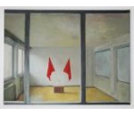 Presentando le fotografia e il quadro in uno spazio vuoto, in un luogo non deputato all’arte cui non era possibile accedere, e imponendo la fruizione attraverso un elemento di separazione, ovvero un vetro, ho potuto creare lo spazio come idea.