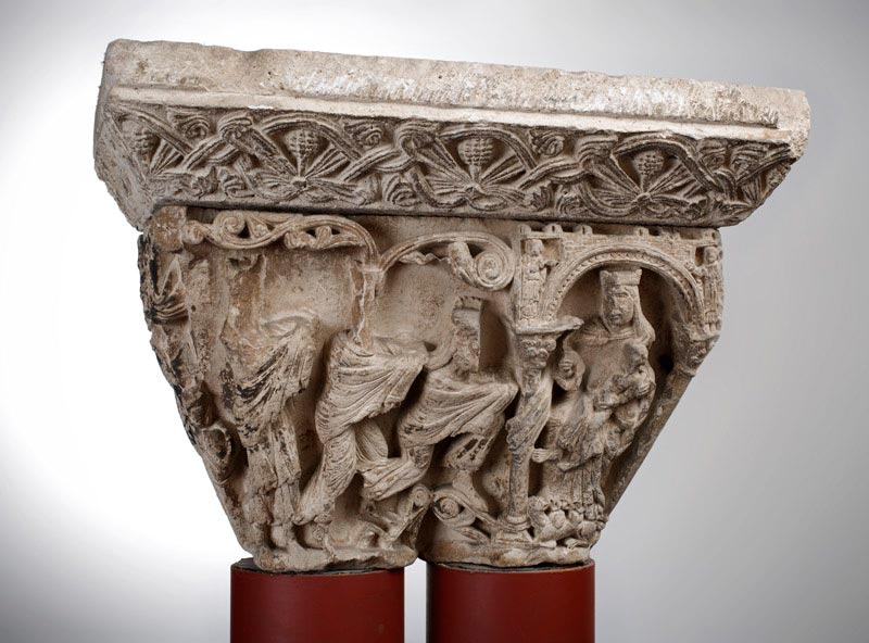 (chapiteau L’incrédulité de Saint-Thomas, cloître du Prieuré de Notre-Dame de la Daurade, 1120-1130)