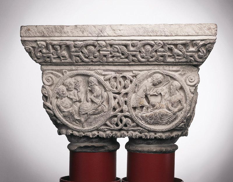 (chapiteau La légende de Sainte-Marie l’Egyptienne, cloître de la cathédrale Saint-Etienne, 1120-1140)