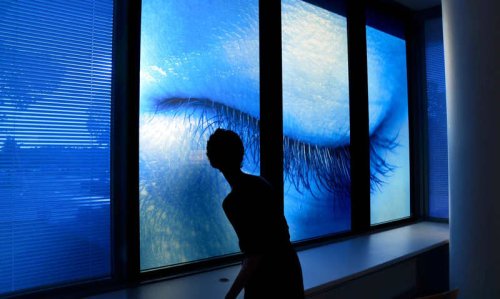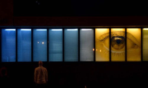 L’œil est surdimensionné, un zoom dans le corps, à l’échelle et en symbiose avec le corps architectural ; une présence humaine, le bâtiment est habité. L’œil est synonyme d’une fenêtre sur soi, mais aussi de l’ouverture sur le monde. Entre vision onirique et instant de réel : l’œil fermé ouvre vers un espace intérieur, un espace onirique, un espace mental, un monde virtuel. Il incite à l’introspection, aux images intérieures, à la mémoire, aux rêves et évoque l’imaginaire invisible. L’œil ouvert regarde l’espace extérieur, représente la communication, l’échange, l’autre, le monde réel - la part visible des choses. Il fonctionne sur le renversement entre le regard et son image, comme un miroir.