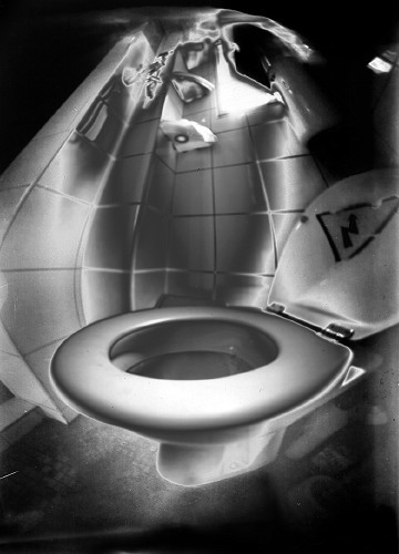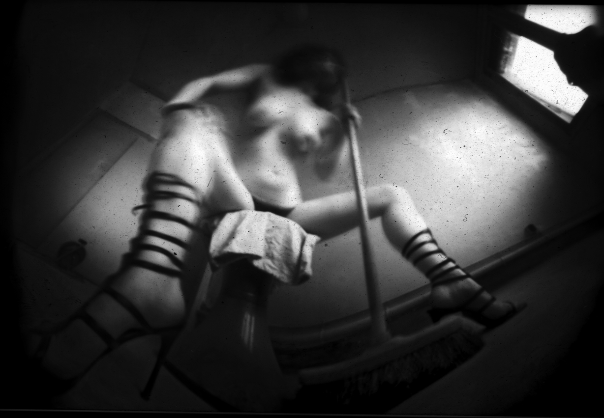 Cet autre trou est à la fois le double de celui du sténopé et la métaphore du vide, matérialisée par un blanc entre des murs, une lunette de toilettes ou un hublot de machine à laver.