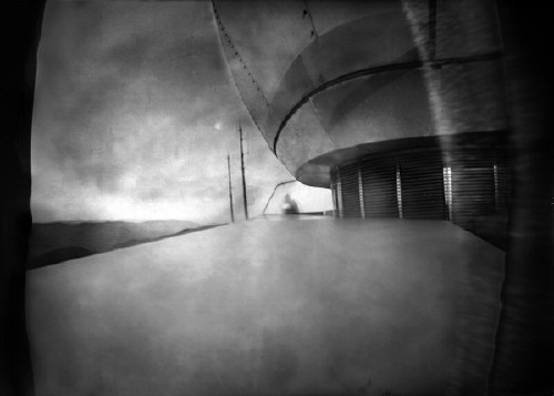 Et puis il y a les photographies qu’elle réalise avec un sténopé. Images uniques, effectuées en une prise unique, elles s’inscrivent dans le vaste domaine de la croyance maintenant millénaire en l’évidence d’une trace de réel capturé par l’image photographique.