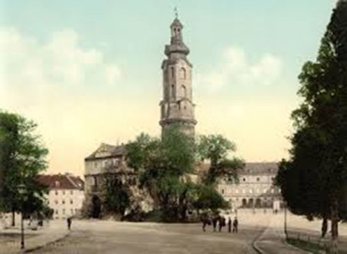 L’intérieur ne m’intéressait pas sur l’instant, et je n’ai pas tenté de franchir la large grille de l’entrée qui donne sur la Humboldstrasse. Ou ce serait une autre fois, comme pour le Bauhaus. Je sais qu’il y a les archives, mais aussi des bustes, des gravures, des livres, une sculpture même de Nietzsche, en bronze, assis et paraissant « penser ». Fatras inévitable des vies ; c’est ainsi, je sais, que le temps érige aussi la culture et la forme de nos connaissances. Et je suis reparti dans la douceur de l’après-midi vers la place du Vieux théâtre, retrouvant à nouveau, comme dans un heureux et éternel trajet, la Schillerstrasse, puis la place du Vieux Marché et l’immeuble de Cranach, les jardins enfin avec, devant le château, la tour en sentinelle teutonique de pierre noire, veillant sur le jour apaisé, sur le doux et endormi palais blanc et secret, en dessous, en dedans, comme celui des intériorités.