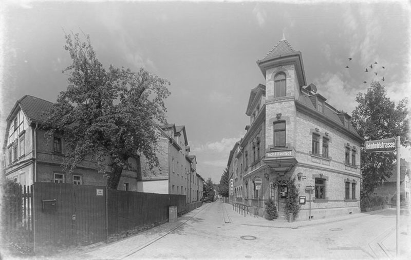 Ancienne petite cité allemande des collines, les pentes sont douces et légères, et tout donne le sentiment d’arpenter sans relâche un léger, un infini et très moelleux coteau. Vers le sud de la ville, la gare, avec tout près l’observatoire de Schiller, se fond dans la largeur en dessous de la rivière, dans l’arc serpentant qui la borde, les pelouses longues et calmes, les bancs accueillants et ombragés, les beaux arbres pleureurs sur la Saale du grand jardin de Paradies. Alors ces coteaux tout autour, ces collines, ces images de champs verdis et de montagnes au loin, semblent se déployer comme le vrai motif, la forme dans la ville et la leçon du vrai dédale des lieux.