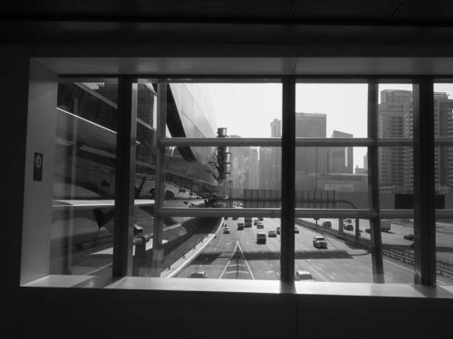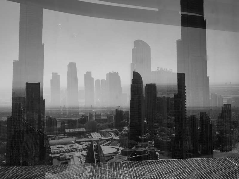 Car l’ambition du cheik actuel est d’offrir au monde « le meilleur du futur » ainsi qu’on peut le lire dans son livre et sur les panneaux visibles un peu partout dans la ville. Dubaï est propre, lisse, fonctionnelle, performante, technologique et ultra connectée. Elle n’est ni tactile, ni odorante, ni bruyante malgré les trois millions d’habitants et la circulation intense. Et ce qui accentue encore son aspect aseptisé et comme désincarné, c’est qu’en raison de son climat extrême elle s’appréhende le plus souvent derrière des vitres : vitres teintées presque noires des voitures, vitrages anti-uv des immeubles d’habitation, des passerelles piétonnes, des tours de bureaux, des « sky view » pour touristes ou des voitures du métro aérien.