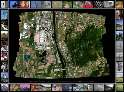 Plus singulière est la nécessité qu’elle a ressenti d’inscrire dans l’entre-deux cadre, dans ce bord noir qui sépare l’image centrale vue du ciel, des images du cadre vues de la terre, des phrases évoquant, commentant ou prolongeant le « discours » des images.