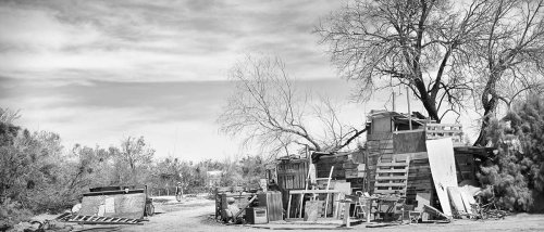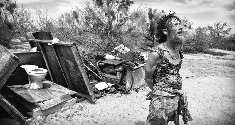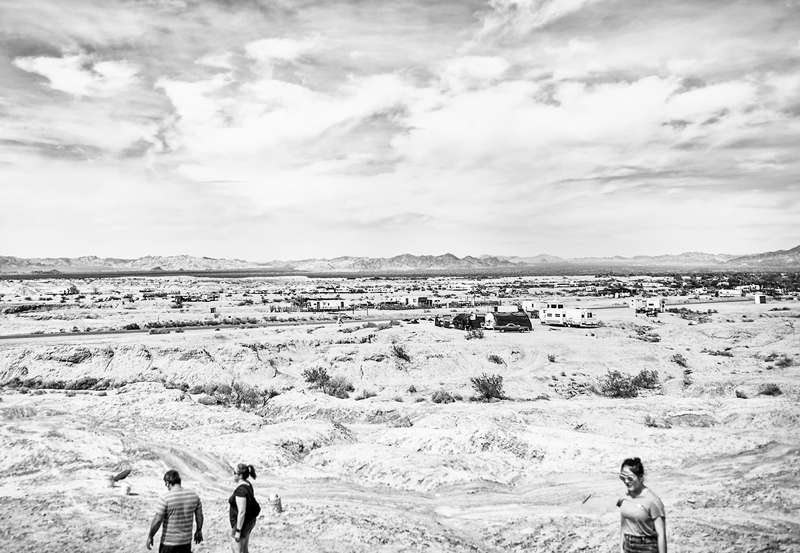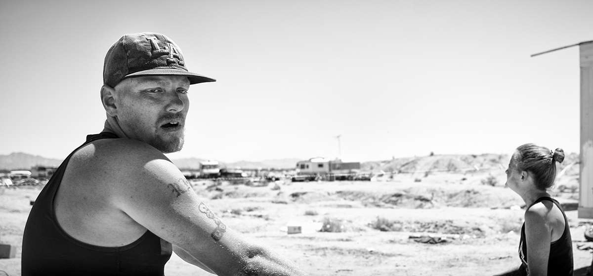 Au sud-ouest de la Californie, dans le désert de Sonora à une heure de route de la frontière mexicaine, il y a Slab City. Ancienne base militaire, cette “ville” est aujourd’hui une étendue de terre de plusieurs hectares qui abrite des milliers de personnes vivant en marge de la société américaine. Ici et là, dans des cabanes de fortune ou des installations plus solides, dans des caravanes, des camping-cars ou encore dans des bunkers, une société s’est organisée où tous vivent leur “rêve américain”. De gré ou de force. Il y a le hippie ou l’artiste qui refuse le système, le vétéran de l’armée qui touche une retraite de misère, la jeune femme qui fuit la vie trop chère de la ville, le père de famille qui retrouve ici un peu de dignité.