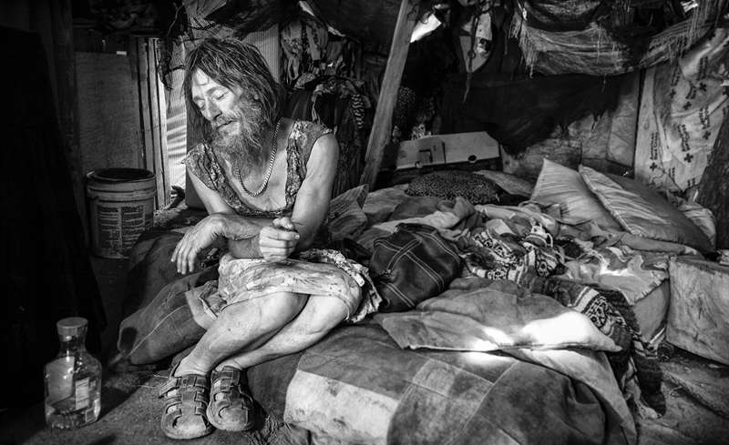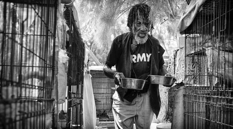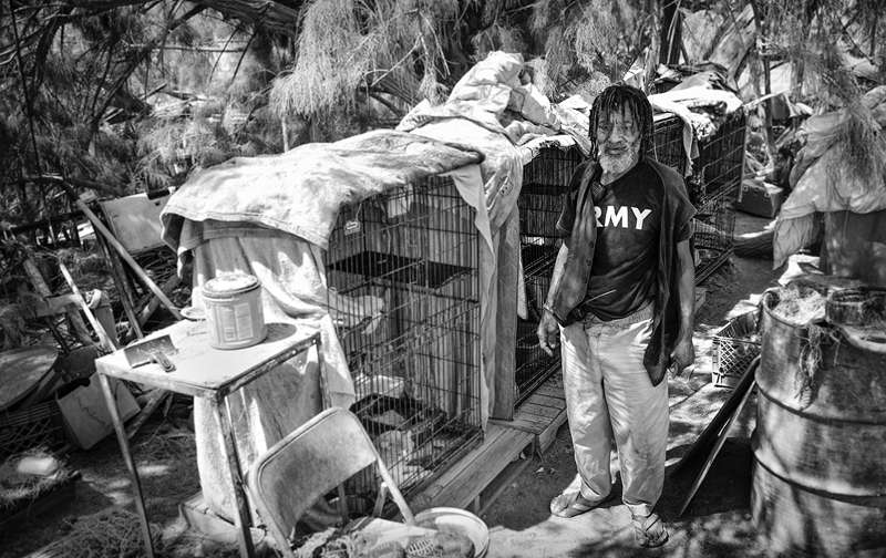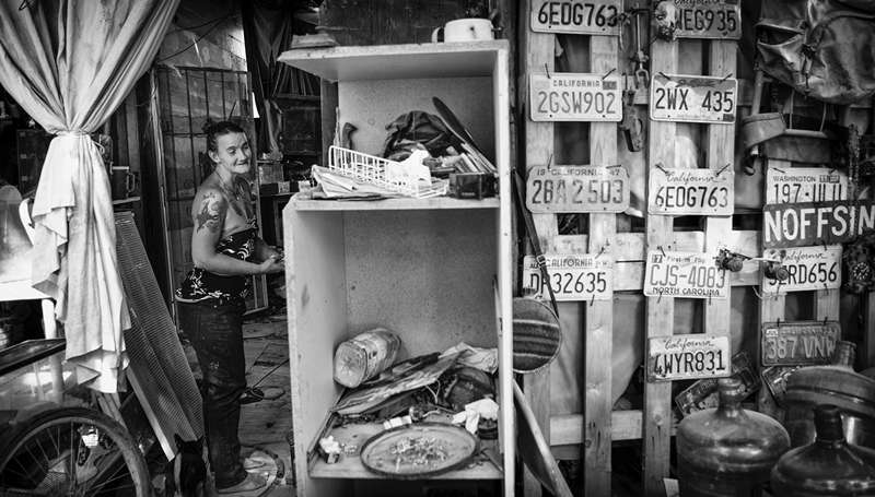 Photos 18 à 20 : « J’ai 66 ans et je suis vierge ! Mes boys, ce sont mes chats. J’en ai une soixantaine ». « Je suis ici depuis 8 ans, et ce n’est pas parce que c’est le dernier endroit libre des États-Unis que c’est bien » – Papa Cat. 66 ans.