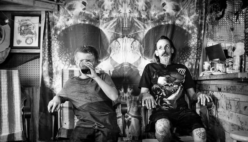 Photos 4 à 7 : « Je viens du Wisconsin et je vis ici depuis dix ans. J’étais programmateur informatique mais je veux être libre » « Tu sais, il n’est jamais trop tard pour se mettre à la drogue » – Doc Love. 56 ans.