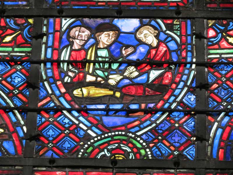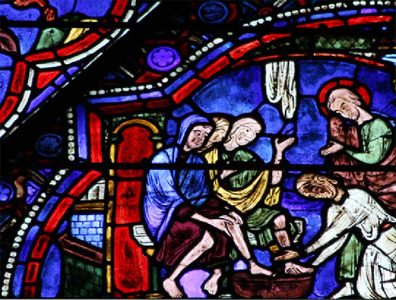 Vitrail de Saint-Julien-l’Hospitalier, lavement des pieds, cathédrale de Chartres.