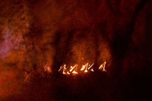Les images de cette série ont été réalisées pendant la procession de Noël 2017 à la Grotte de Sainte Marie-Madeleine, en pleine nuit, dans la montagne de la Sainte Baume par -10 °C. L’énergie générée par ce flux mental est matérialisée par l’embrasement des flambeaux, l’apparition diffuse de symboles dans ces paysages à peine révélés.