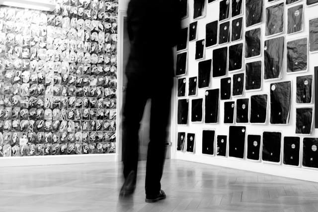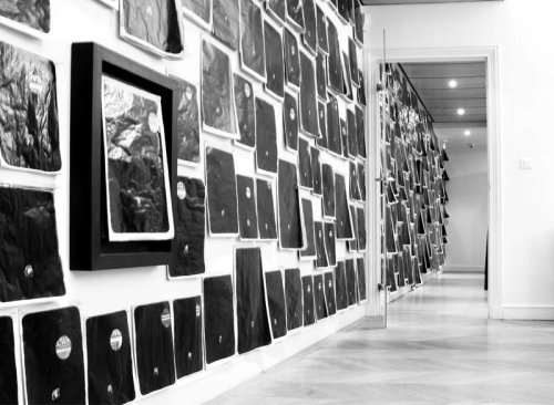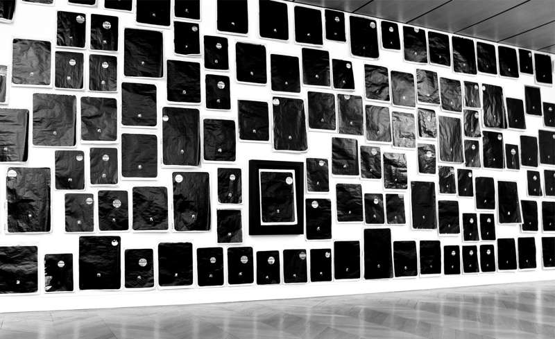 Tenir un journal et s’en mettre plein les doigts… Tenir un journal a toujours quelque chose de noir, l’encre peut-être… Mais ce sont les nouvelles… Sempiternelles… C’est de cette noirceur que chacune des unes de cette année 2015 se revêtent, se revendiquent et se parent, davantage encore sous le regard d’Aldo Caredda qui de chaque jour ne semble finalement ne retenir que la date. Cette presse, qu’il nous expose, sur une année complète, en aura connu des évènements, du pire au pire, jamais rien n’allant en le disant… Les titres se figent sous ce deuil permanent et se voilent et se parent. Encore et toujours. Ne reste que cet angle, cette empreinte posée sur un présent qui ne dure pas, tout ça pour ça ? Chaque 24 heures, un nouvel arbre… Chaque fois, une forêt, sacrifiée… Tout ça pour ça ? Alors tenir un journal et se salir ? S’en mettre plein les mains ? Puis s’en laver ? On lit avec des gants. Où alors, c’est nouveau, on ne lit plus… C’est aussi moderne que de se protéger, un préservatif pour le coeur, pour l’esprit, pour la raison. Lire ou ne pas lire, telle est la question. Puisque personne n’y voit rien… De toute façon. Occulter et oublier ? Recouvrir et déformer ? Rester aveugle et sourd ? Quand même ce qui est censé nous éclairer, nous plonge dans les ténèbres, alors, l’artiste, lumineux, viendra pointer la seule vérité contenue là : le jour et l’heure.