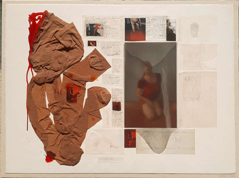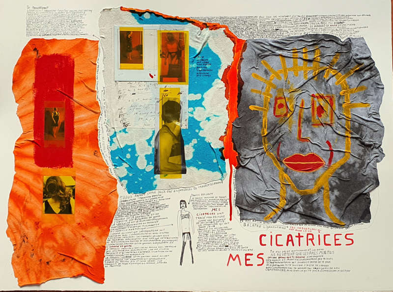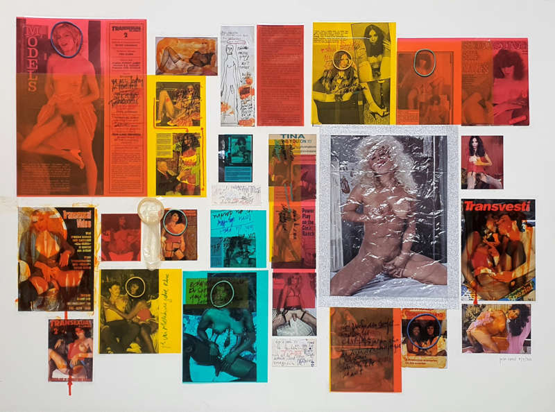 collages | polaroids | impressions | anciens magazines x | plastique | tissu | préservatifs | encre de chine | acrylique | crayon | stylo…