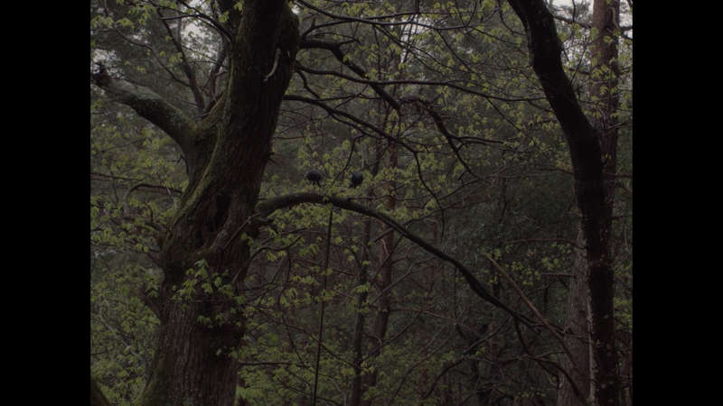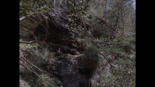 Le lieu Nous sommes derrière l’œillère de la porte de la cabane, nous voyons l’homme s’approcher. Tout au long du film nous serons immergés avec lui et elle, cette jeune femme Mana, qui l’accompagne dans les bois de la Lozère. Nous n’emmenons rien avec nous, nous sommes débarrassés. Faire lieu, c’est forcément un acte d’immersion, c’est perdre l’espace, retrouver l’inévidence, ne plus savoir ce qui fait forme, ce qui fait signe. Notre point de vue ne se pose pas sur le monde, C’est un point de vue dans le monde, que nous propose la réalisatrice. De cette immersion naît un sentiment d’immanence, sans symboles. Nous ne regardons pas le film, nous sommes avec les deux personnes, nous sommes avec les arbres, les bruissements, les sons. Ces relations d’immanence, ne s’élèvent pas, elles s’entretiennent, elles tentent plutôt à se resserrer, à faire corps commun.