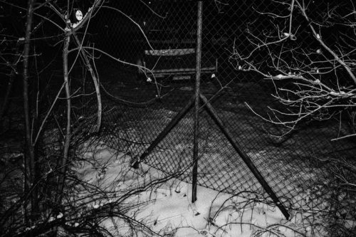 My attention is at its peak. Vincent van Gogh’s quote about how night is more alive and richly coloured than day describes my perception perfectly. No way my series would be full of colours. Shades, reflections, high contrasts, and leaving many details up to a viewer’s imagination were my choices for conveying the vibes. How strange, an almost sinister feeling came down my spine while I was standing in the dark, watching the snow or rain falling on an empty playground, usually full of kids during the day. Are there any people living in all those blocks at all, or are there just vacant shells waiting for someone to come in and turn on the lights ?