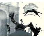 Parce que soudain, là-haut, devant, si près et si loin à la fois, la part sombre de l’invention et du progrès s’étale en une perspective à la fois sombre, terriblement sombre et pourtant, lumineuse, mais seulement dans les lointains, parce que l’invention transformée en attraction et en jeu ne semble plus servir qu’à un délassement sans objet, parce que la main semble réduite alors à faire tourner le rien comme si le moteur n’était plus qu’un moulin à prières sans prières, l’ombre noire de dos de l’homme aux empreintes, tel un voyageur venu d’ailleurs, s’empare de ce vide interstitiel et pourtant infini qui sépare et relie l’attente de la réalisation de la promesse de son accomplissement éternellement différé.