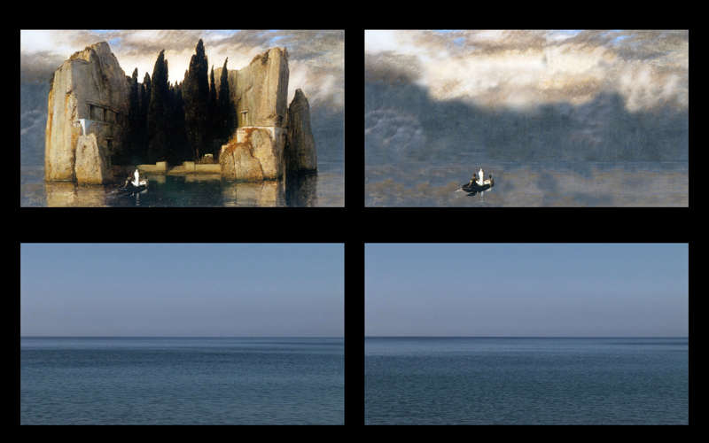 While in the work of Pier Paolo Patti the video is measured with the reasons of communication, in Ciro Vita- le’s L île des Morts the comparison is with painting and its ways of representation and exploration of reality. As the title suggests, the reference is to the famous painting realized in first version by Arnold Bocklin in about 1880, where the issue of the passing away becomes omen for a bigger question that reflects on the transience of life and leads us to confront the greatest fear : the death. The path that leads to such a compa- rison is sprinkled with symbols through which it fully accepts that possibility for the painting to ’represent’, thus superimpose and weld together signifier and signified. The cancellation of any semantic distance between the two poles of language is declined by Vitale in order to alterate the customary diachronicity of the mean video, which is functional to restore the truth of the contemporary drama of immigration : the viewer starts a visual journey from a perspective similar to that which you would have if you were on a boat in the sea ; the island in the distance appears as a promise of the future. Progressively, however, the possibility of a safe landing and a safe refuge decreases, becoming spectrum and then hallucination, disappearing entirely : all hope wrecks and sinks along with the bodies of the many that Vitale commemorates with his sea salt sculpture depicting a skull.