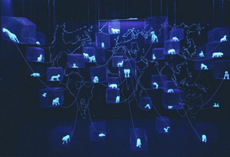 Le duo d’artistes Art Orienté Objet, formé par Marion Laval-Jeantet et Benoît Mangin travaille à retarder la fin du monde. Ils développent une œuvre singulière sur la nécessité de préserver la biodiversité à partir de leurs recherches en biologie, en éthologie ou en anthropologie.