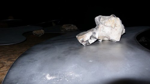 B : En dehors des représentations pariétales et autres, je m’intéresse beaucoup aux premiers outils. C’est-à-dire au premier outillage de forme intelligente constitué de matériaux naturels. Comme les silex, les grés ou les jaspes. Ces premiers matériaux pré industriels ont aidé à l’émergence de nos modes de vies. A partir de cette lecture, l’échelle des inventions des outillages à partir du bronze, du fer, du plomb et de l’étain, ont donné des matériaux plus affinés qui nous ont permis d’accéder à l’inaccessible. C’est-à-dire à l’espace. La préhistoire est pour un moi un terrain constitué de différents matériaux vierges qui sont comme les sédiments, ou la matrice du parcours de l’humanité. Du parcours géographique de l’humanité.