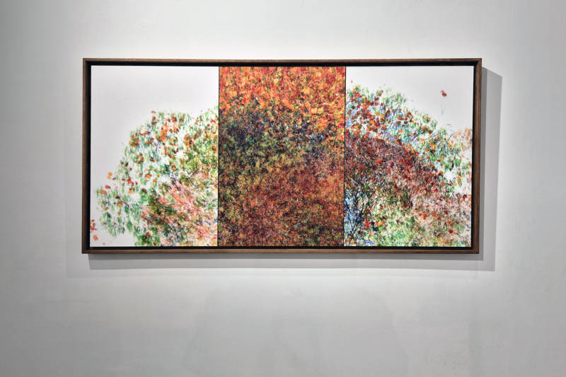 Parmi les traits qui illustrent au mieux l’esthétique que développe Florian Zumbrunn, il y a l’attachement qu’il porte aux rehauts à la mine ou au pastel. C’est la nature, sujet ô combien contemporain, qui souvent l’inspire. Ainsi, il a observé les mouvements en art, dont l’impressionnisme, qui l’ont consacré. Dans son travail, le geste est omniprésent, des esquisses aux rehauts. Pourtant, au cœur de ses impressions dont celles exprimant une nature foisonnante, il y a du code qui en instruit les moindres détails. Et c’est en revenant par le trait, à maintes et maintes reprises au-dessus de tels détails, qu’il défie nos regards. Impossible de distinguer les expressions des algorithmes de ce qui, si parfaitement, les complète dans un second temps. Les actions de l’humain et du non humain sont en parfaite symbiose comme c’est la règle en cette troisième décennie du 21ᵉ siècle.
