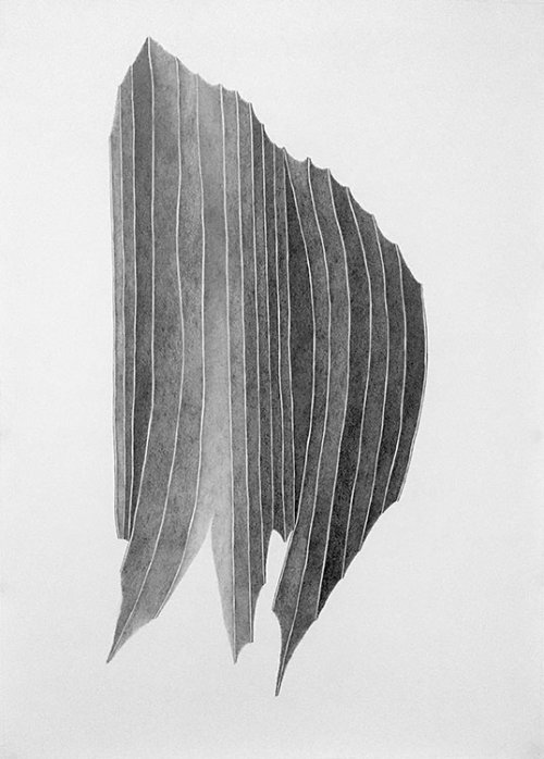 Les formes diaphanes qu’Elise Beaucousin fait apparaître à l’intérieur de surfaces irisées par les effets d’un crayonnage méticuleux échappent à la figure. Elles empruntent leur épiderme changeant à l’organique, au minéral, au végétal. Leur devenir se manifeste et se module à travers l’approche matiériste, sensorielle et lentement conduite d’un dessin immersif, additif. Gilles Deleuze a qualifié « d’haptique » ce type d’agencement qui n’est plus lié à un enjeu de ressemblance. « L’espace haptique ne contient ni formes, ni sujets mais se peuple de forces et de flux, constituant un espace fluide, mouvant, sans points fixes, sans empreinte qui ne soit éphémère : comme le Sahara, ou le sourire infini des vagues [1] ».