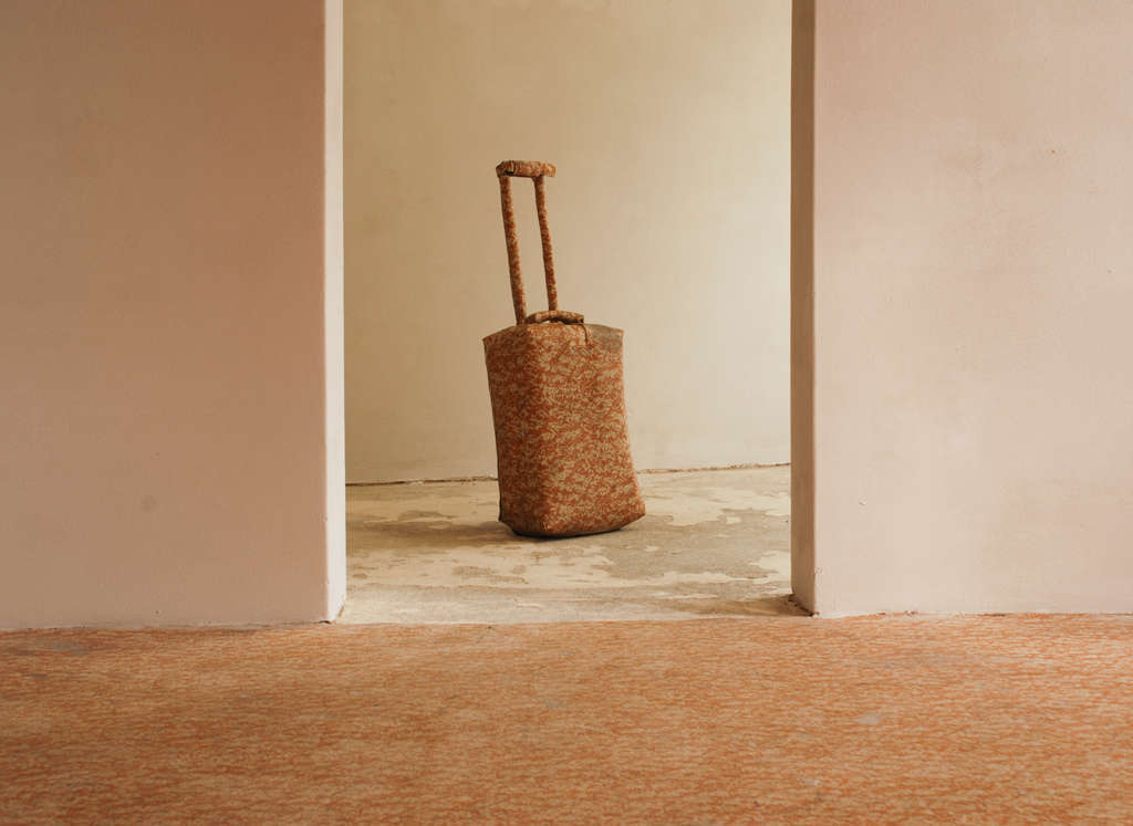 La valigia, un comune trolley, è rivestita con il PVC proveniente dal pavimento dello spazio espositivo. Tale materiale porta la texture tipica del periodo socialista, richiamando quindi alla mente il passato, ma il supporto su cui è applicato suggerisce l’attesa di un movimento (una partenza ? un ritorno ?).