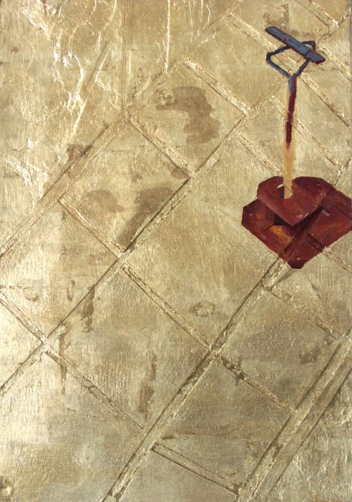 Una sedia vuota, emblema di un’assenza che allude alla presenza, diviene elemento ricorrente per qualche anno, cifra distintiva e -talvolta- ossessiva, combinata con l’annullamento dello spazio prospettico generato dall’uso della foglia d´oro e con la scomposizione del quadro in una molteplicità di dipinti, che all’interno di un’unica cornice trovano una nuova totalità : l’unità, all’interno della molteplicità dei frammenti.