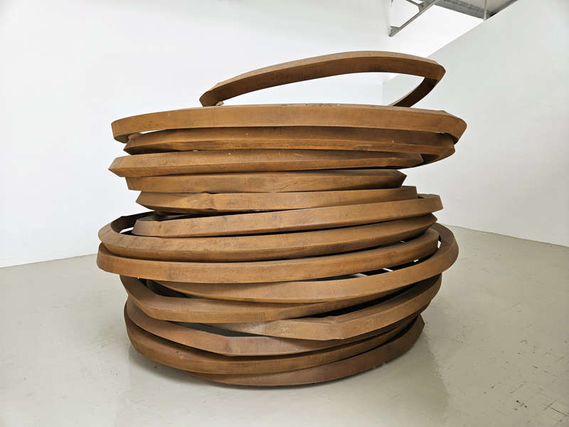 Ce qui saisit immédiatement dans les gigantesques parcs de sa Fondation, au Muy, dans le Var, c’est la monumentalité de ses œuvres. Tout comme celle des sculptures de ses amis, car l’artiste est aussi collectionneur. On y découvre ses créations en acier Corten que la rouille permet de dater, orange pour les plus récentes, plus sombres pour les plus anciennes. Elles sont issues de différentes séries : Points, Lignes, Lignes indéterminées, Angles, Arcs et Effondrements.