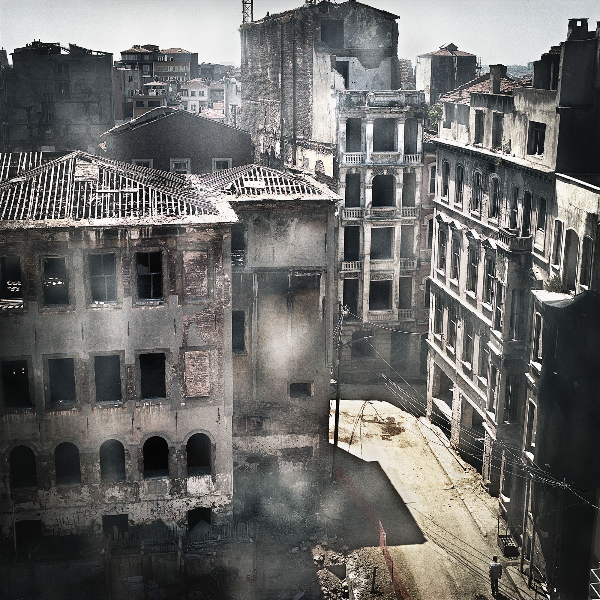 D’où vient ce bruit à l’horizon ? Du grondement sourd et indistinct d’une menace invisible ? Du fracas à peine assourdi de la circulation sur le boulevard Tarlabaşı qui, depuis la fin des années 1980, déchire le tissu urbain stambouliote de Beyoğlu ? De l’effondrement des bâtiments en ruines des années 1920 squattés depuis l’expropriation ou l’abandon plus ou moins forcé de leurs propriétaires grecs ou arméniens [1] ? Des cris et des altercations qui font vibrer, la nuit et le jour, des labyrinthes de palissades de chantier et de gravats ? De la nouvelle effervescence des « Airbnb » dans les zones préservées ou réhabilitées ? Des coups de godet des tractopelles ? Du tumulte des chantiers de la gentrification immobilière – « Tarlabaşı 360 » devenu « Taksim 360 », plus vendeur – qui, depuis plus d’une décennie, laissent en l’état les carcasses d’immeubles ? De la stridence des descentes de police contre les organisations kurdes ? De la rumeur des petits métiers et des trafics pour qui l’heure ne fait pas sens ? De la clameur de ceux qui sont pour et de ceux qui n’ont d’autres issues que d’être contre ?
