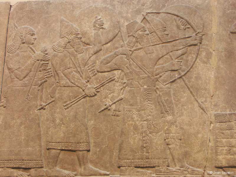 Les archers se suivent en colonne sur la face d’un mur ; vois-les, prisonniers des postures raidies, qui portent les lances comme des flambeaux. Voici de l’Assyrie violente, la convenance des poses ; et maintenant la guerre est adoucie par des frises de lotus et d’iris qui encadrent la marche des soldats ; on a choisi des fleurs poussées dans l’eau grasse des fleuves, remarque-le et vois aussi les vêtements soigneusement drapés sur les corps rangés des guerriers assagis ; on les a fait de drap brodé de motifs floraux et de signes et puis, on a baigné dans l’émail les briques des murs afin qu’ils chatoient à la lumière du soir ou sous les lampes de cuivre. Serait-ce l’effet de nos danses ces palais aux larges entrées et ces murailles moins épaisses ? Regarde les terrasses qui s’étagent au flanc de la dune, ne sont-elles pas moins dures que les énormités de Ninive ?... Viens dansons dans le sable afin que s’effacent nos pas, ne gravons pas nos figures dans l’argile des tablettes ou la brique des murs, glissons nos pieds dans la matière fluide, vois comme ruissellent les grains autour de l’empreinte et comme ils s’égarent entre nos orteils. N’as-tu pas chaud de tes gestes, ne sens-tu pas tes jambes ? Viens, allons dans l’eau tiède rafraîchir nos danses avant que les archéologues ne détournent le fleuve pour y flotter les colonnes et les frises...