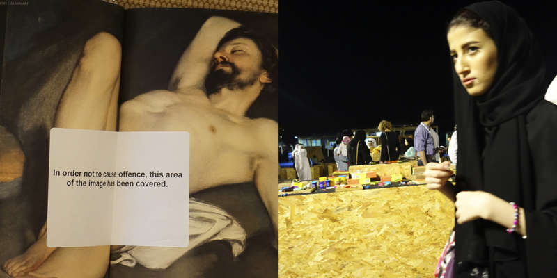 Il est facile, alors, de trouver, dans les publications accessibles à tous, ou parfois, à travers un passage en douane un peu serré, une application à cacher ce qui ne doit pas être porté à la vue publique. Les entre-jambes, les poitrines, les postérieurs, parfois le corps entier, s’il est trop charnu, charnel, sexué.