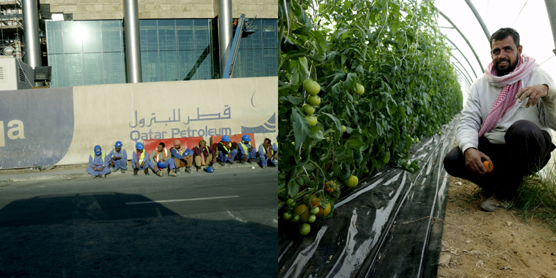 Longtemps, pendant quelques millénaires, des êtres ont vécu sur une petite presqu’île désertique, la plupart de l’année sous un climat à la limite du vivable, stérile, adaptés. Pourtant, évidemment, il y a une petite vallée, au dessus peut-être de la seule nappe phréatique d’eau utilisable pour organiser un peu d’agriculture. Trop peu productive, évidemment, mais suffisante pour quelques milliers d’individus, voire quelques dizaines de milliers, certainement pas plus. Les agréments modernes, massifs, que nous connaissons sur nos terres n’ont pas été choisis ici. La production agricole est à main d’homme, à dos d’âne. Il y a bien sûr des évolutions mécaniques, réfléchies, modernes, des serres protègent des rayons solaires et aident à la conservation de l’humidité, un réseau d’irrigation en goutte à goutte, attentif, économe, responsable, qui renforcent l’attention écologique à cette fragile économie. La production locale est presque accessoire aujourd’hui, tant elle ne peut nourrir qu’une infime partie des habitants, inutile.