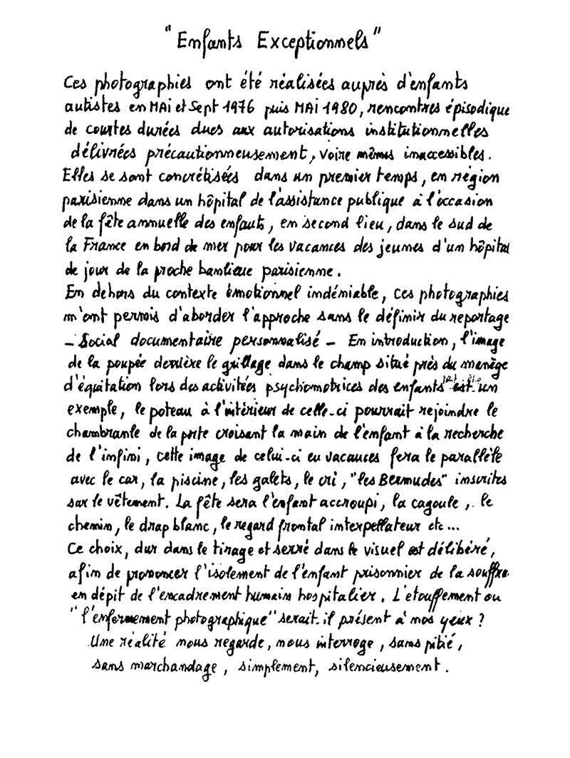 Dans ce texte, Jean Francis Fernandès s’exprime aussi avec simplicité et puissance sur ce qui constitue l’essence de son approche photographique. Pol Lujan, lui, nous propose une méditation sur ce qui constitue le cœur de nos préoccupation les plus évidentes et les plus obscures. À travers un extrait d’un texte de Jean Lacroix, il nous implique dans la confrontation avec nous-même en tant que supports et sujets de nos croyances.