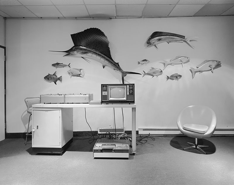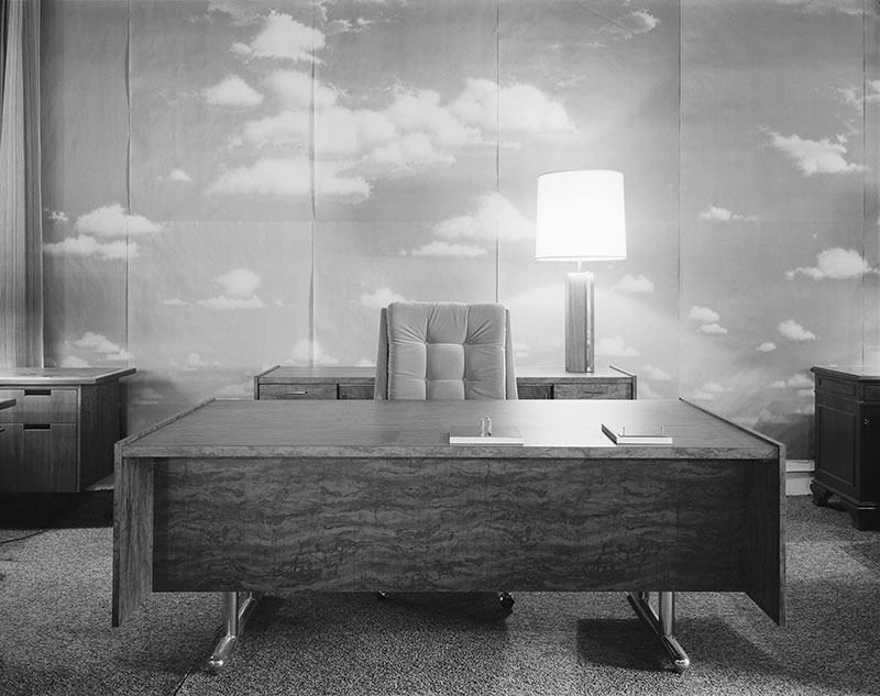 Lynne Cohen (CA, 1944 – 2014) décède en 2014 à Montréal, au Canada. Elle laisse une œuvre et une archive particulièrement homogène : pendant plus de quatre décennies, elle photographie exclusivement des intérieurs. Initialement des pièces comme des salons, des salles de réception et des instituts de beauté, puis des lieux de plus en plus chargés politiquement comme des installations militaires et des laboratoires. Chaque cliché est empreint d’une connotation légèrement absurde et surréaliste, qui fait la part belle à l’obsession humaine de contrôle et de compréhension.