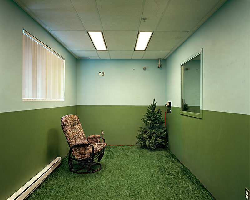« Au début des années 1990, avant de commencer à travailler en couleur, j’ai décidé d’encadrer mes photos en formica de couleur distincte. (…) J’ai sélectionné des couleurs en lien avec les détails des clichés, en lien avec des objets proéminents, la température ou les odeurs que j’associais aux pièces. Il m’est apparu clair que la couleur servirait à capturer quelque chose de quintessentiel ou de caractéristique du site, quelque chose qui donnerait un peu plus (mais pas trop) d’informations au spectateur. »