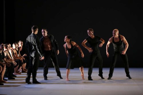 Tout autre est l’univers du Stabat vers lequel une dernière fois l’œuvre bascule du dancing au tragique. Et dans ce monde-là, la mort n’ouvre pas à la joie forcenée. Les corps ne se mêlent pas. Le gisant est redressé par le groupe, brandi à bout de bras, avant de disparaître dans la foule toute tournée vers les étoiles. Rappel que si la tragédie n’appartient pas à la vie, elle permet néanmoins l’élévation collective.