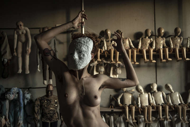 Avec un ensemble conséquent d’images issues de mises en scène élaborées autour de la question du masque et de la marionnette, Vanda Spengler s’inscrit dans une longue lignée de réflexions sur ces éléments matériels qui incarnent à eux seuls l’une des questions les plus essentielles que se posent les humains, celle relative à ce qu’ils sont. Non pas qui suis-je ? mais bien que suis-je ? Et en effet, telle est bien la question qui vient percuter de son mystère nos consciences abasourdies.
