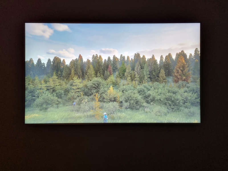 C’est en utilisant un moteur de jeu rompu aux lois de la physique que Timothy Thomasson a créé l’univers de l’installation générative I’m Feeling Lucky. Il en a pensé les moindres détails que la machine calcule sous nos yeux en temps réel. Il connaît les pratiques du panorama des peintres ou photographes du dix-neuvième siècle que l’industrie du jeu vidéo permet de réactiver en cette ère digitale. Et lorsqu’il a souhaité peupler son paysage infini, il s’est tourné vers Google Street View, qui archive notre monde pour en créer un double panoramique. C’est-à-dire que l’artiste a extrait les silhouettes photographiques de gens ordinaires pour en augmenter la présence en trois dimensions avant qu’ils ne soient positionnés précisément sur leur nouveau territoire, comme on le ferait patiemment avec des figurines. C’est ainsi que la scène post-cinématographique qui, lentement, défile sous nos yeux raconte l’histoire de ce qui n’a pas eu lieu. Quand les actrices et acteurs de ce qui se joue ignorent probablement même leur participation à cette œuvre d’une errance infinie.