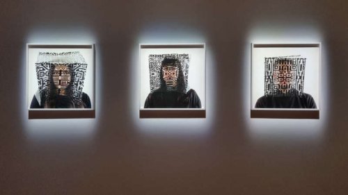 Caroline Monnet est une artiste multidisciplinaire d’origine franco-anichinabée (algonquine) qui vit et travaille à Montréal. Tout particulièrement sensible aux cultures autochtones d’Amérique du Nord, elle les invoque régulièrement dans son travail, comme dans sa série de portraits intitulée Fragment. Sur les masques cubiques qu’elle a confectionnés, figurent des motifs transmis de génération en génération. D’un point de vue formel, les compositions en symétrie aux géométries entrelacées s’adaptent parfaitement aux visages des sujets ainsi photographiés. D’un point de vue symbolique, les graphismes, qui altèrent la reconnaissance des visages, agissent comme autant de filtres, à la manière de nos croyances qui, souvent, interfèrent dans nos relations à autrui. Les écrans placés par l’artiste entre soi et l’autre dans l’espace de l’exposition ne peuvent que nous inciter à reconsidérer nos jugements. Les fragments de cultures dont nous sommes issus, parce qu’ils se complètent et se recouvrent d’une manière ou d’une autre, devraient toujours nous rassembler.