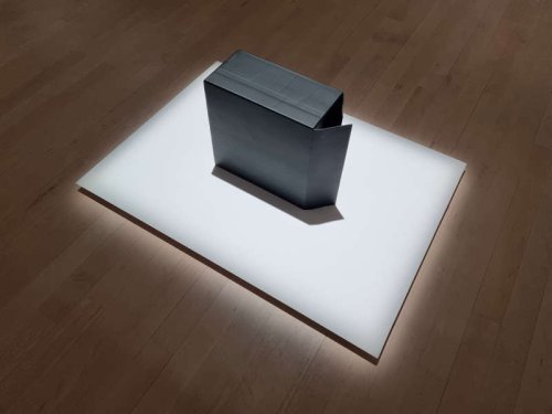 L’installation Black Box composée d’un monolithe noir reposant sur son socle blanc ne s’inscrit qu’en apparence dans la continuité de l’art minimal. Il s’agit davantage d’un hommage aux complexités contemporaines de l’invisible considérant ce qu’elle représente. Car Nicolas Baier a modélisé tous les composants d’une tour d’ordinateur semblable à celles des gamers avant de les imprimer en trois dimensions et de les assembler pour, enfin, (re)placer ce simulacre de machine dans un carton d’emballage entr’ouvert également prototypé. Ainsi magnifié, et avec sa part d’invisible symbolisant l’opacité de fonctionnement des algorithmes d’intelligence artificielle, l’ordinateur n’est autre que le sujet de l’œuvre. Les tirages aux allures de radiographies de la série Réplication qui jouxtent la sculpture ont valeur de certificat tant ils attestent d’une reconstitution minutieuse. Quant au réseau filamentaire jaune similaire à un blob, cette espèce unicellulaire sans cerveau et pourtant capable de bien des prouesses, il semble contaminer les images. Tout en évoquant la complexité du vivant avec laquelle nos machines n’ont de cesse de rivaliser.