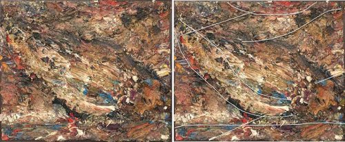 Je suppose que si la plupart des gens ne voient pas ces structures latentes, c’est parce qu’ils n’observent pas assez longtemps les œuvres… ou que leur œil n’est pas habitué à remarquer les subtilités de ce type. Précisons que si indiquer de visu ces liens peut s’envisager cela reste difficile à transmettre dans un texte puisque presque impossible à formuler avec des mots. Les traits fins ajoutés sur quelques illustrations accompagnant ce texte tentent d’indiquer certaines directions parcourues par un regard en recherche.
