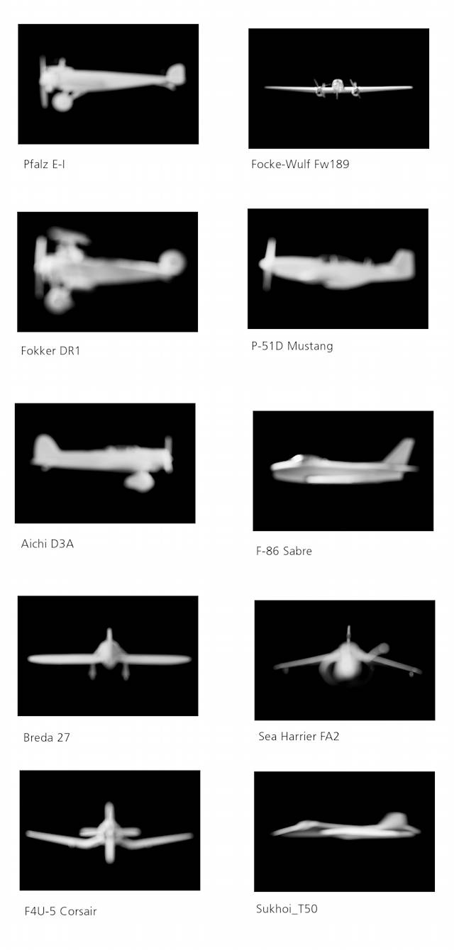 Après avoir fabriqué les maquettes, je me suis ensuite mis à photographier ces rapaces de plastique, à tenter d’obtenir une sorte de carte morphologique des appareils, un tableau typologique de l’évolution des profils aéronautiques. Sans même que j’en sois véritablement conscient, le processus allait petit à petit clarifier ce qui n’était d’abord qu’une vague intuition, une obsession diffuse. La photographie se révélait une fois encore être un outil de mise en ordre de mes intérêts visuels, de classement mémoriel. Ce travail systématique, mais néanmoins passionnant, presque ludique même, me permit de me libérer de mon rêve, de voir disparaître l’angoisse nocturne.
