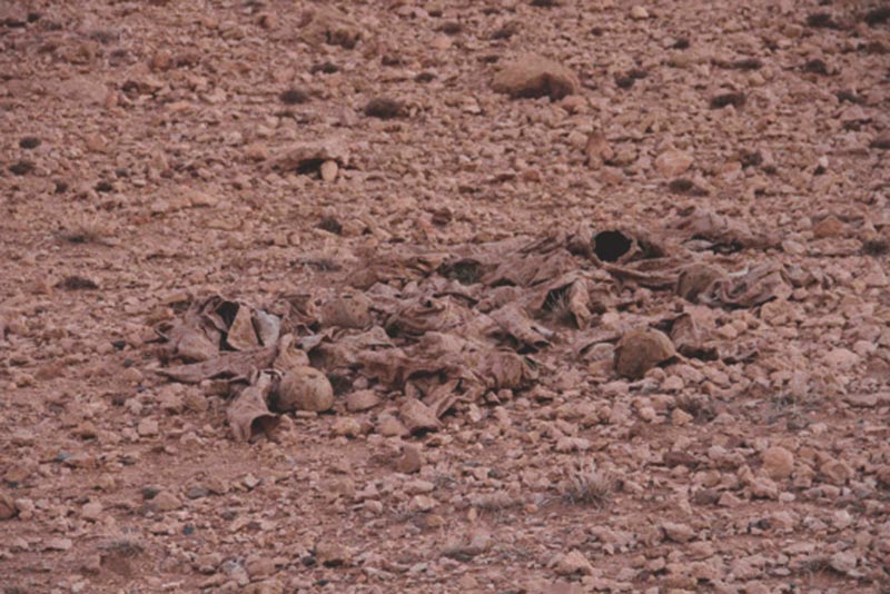 Mais le doute s’installe progressivement : en guise de dépouilles ce sont là des uniformes militaires qui jonchent le sol. Réalisée dans le désert marocain, cette série, « la première sans figure humaine » précise Cogitore, met en scène une nouvelle technique de camouflage appelée « digital desert » qui permet d’échapper non plus à l’ennemi de tranchées mais à l’œil invisible des drone.