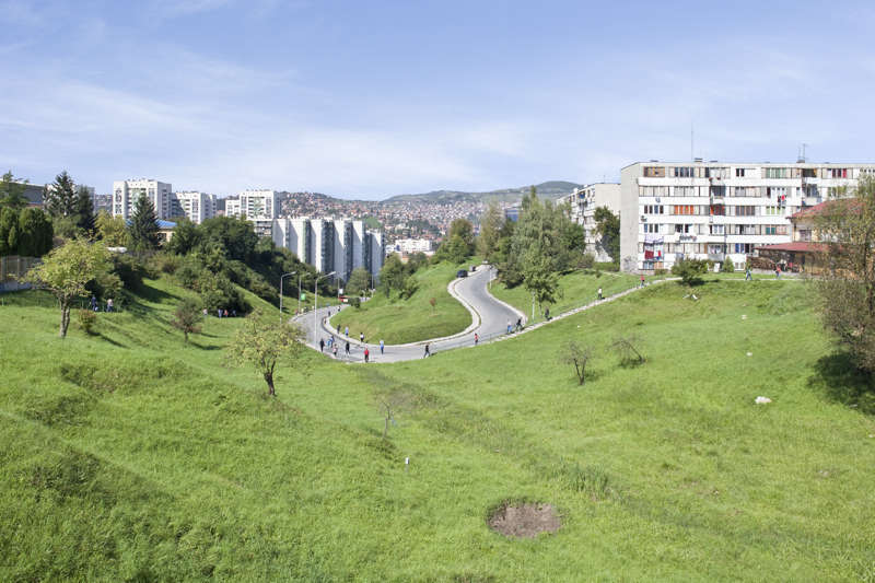 Qualifié d’urbicide, le siège de la capitale bosnienne repose sur une volonté d’anéantir la ville en tant qu’enjeu culturel. « Les lieux "ordinaires" ne sont pas détruits de manière aléatoire, mais parce qu’ils sont, dans le quotidien des habitants "ordinaires", des repères de la proximité et de la mixité des populations. » [2] L’ancien village olympique de Dobrinja, petite banlieue colorée traversée par la ligne de front ; La Bibliothèque nationale et les tours jumelles UNIS ravagées par les flammes ; les ruines enchevêtrées des mosquées et des grands ensembles communistes, des cathédrales et des centres commerciaux. Jusqu’à la fin du siège en février 1996, l’armée nationaliste serbe tentera d’épuiser la mémoire de Sarajevo, d’en effondrer l’épaisseur historique car, écrit dans son journal de guerre l’architecte Ivan Štraus, « elle exècre les villes, tout ce qui est ville. » [3]
