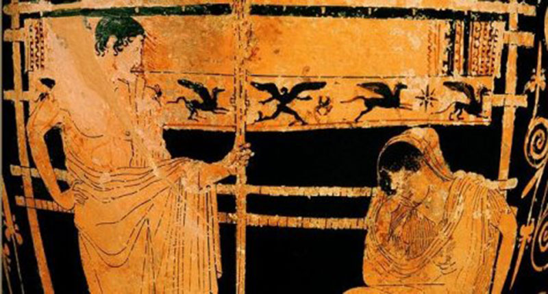Flottant, scintillait le souvenir, la présence et le corps de femme et les voiles fins de l’immuée Pénélope. Sur le grand livre illustré, ma mère désignait les images sombres des objets retrouvés, des lances déposées et parfois en morceaux, des amphores, des lyres et des parures antiques. Mon esprit cherchait dans les contrastes mats et l’épaisseur des pages, les jours, les matins et les siècles passés ; cette image sombre et la fine surépaisseur de la page sous mes doigts avaient sans aucun doute le toucher de la laine chaque nuit que tissait Pénélope.